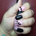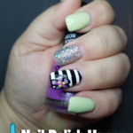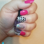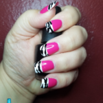 This is another design I’ve done before, with pink, black, white, and glitter. I decided to repeat this because my previous picture was terrible. That’s okay, because I had fun painting this nail art design, and decided to call it Pink Party Glam To get this design, you need jagged sticker nail guides, and the…